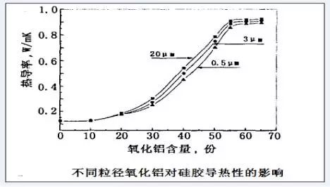 不同粒徑的氧化鋁對(duì)矽膠的導熱率的影響如下: